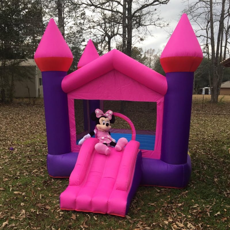 This bounce house is beautiful! Our daughter loves it and it's easy to set up! A worth it buy!! Happy parents happy baby.It was just a little bit more money to purchase this one versus renting one for 4 hours and now she has one to play with all the time! Excellent quality, easy to set up and overall and excellent value!