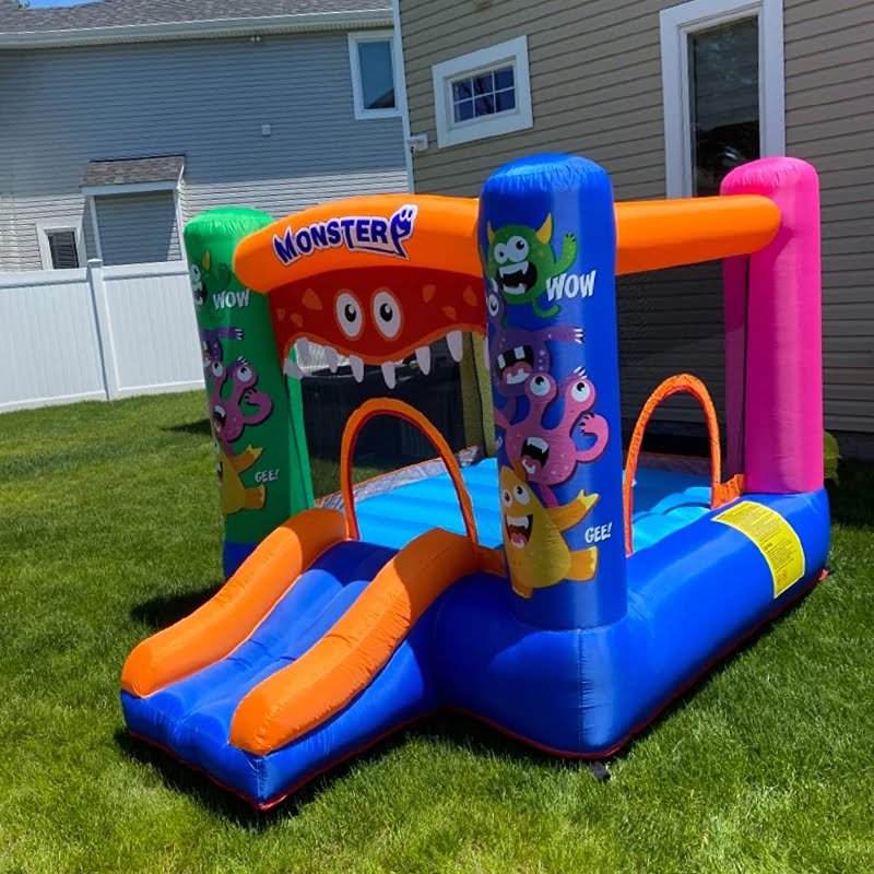 My 2 and 4 year old have been jumping on this all summer. It's quick to set up and inflates and deflates in seconds. It's durable and hasn't ripped. The monster design is cute! It says it can hold up to 3 kids with a max combined weight of 250.