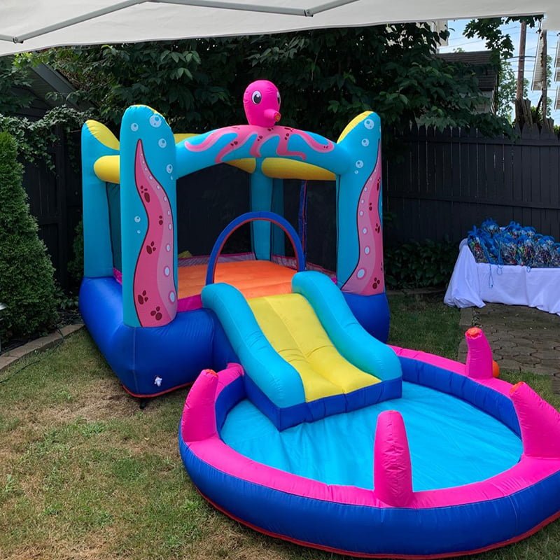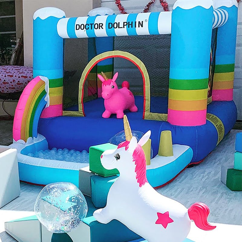 We were going to rent a bounce house for our daughter's birthday party, but we decided to purchase this instead and we are so happy we did. It is very durable and high quality, and now we will be able to use it for years to come. We set it up outside for the party, but now we have it in the basement and we can easily turn it on and fill it in minutes when the kids want to jump.