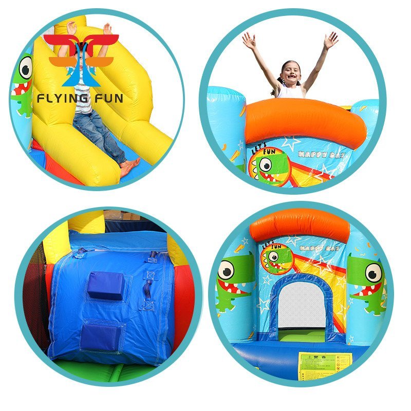 Main Features: Bouncing Floor, Slide, Ball Pit, Rock Climbing, Baby Dinosaur Cartoon Design.
