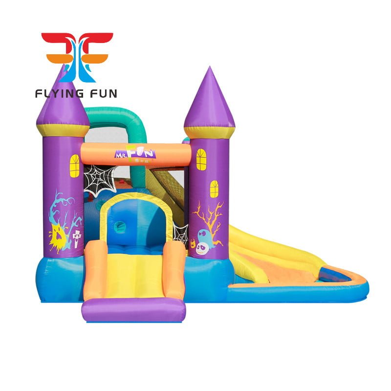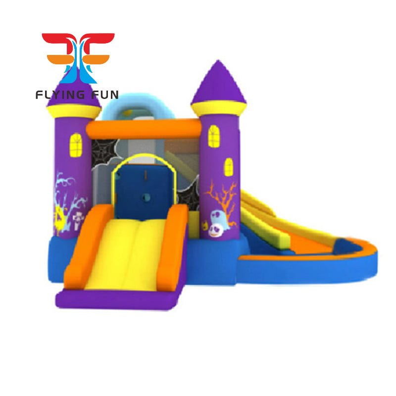 Main Features: Bouncing Floor, Water Pool, Water Sliding With Water Spray, Mini Slide, Rock Climbing, Basketball Hoop, Halloween Haunted House Design.