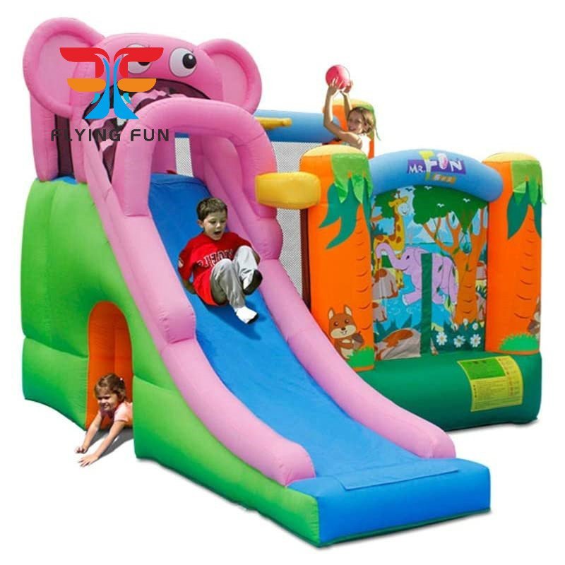 Main Features: Bouncing Floor, Slide, Rock Climbing, Basketball Hoop, Drilling Hole, Elephant Cartoon Design.