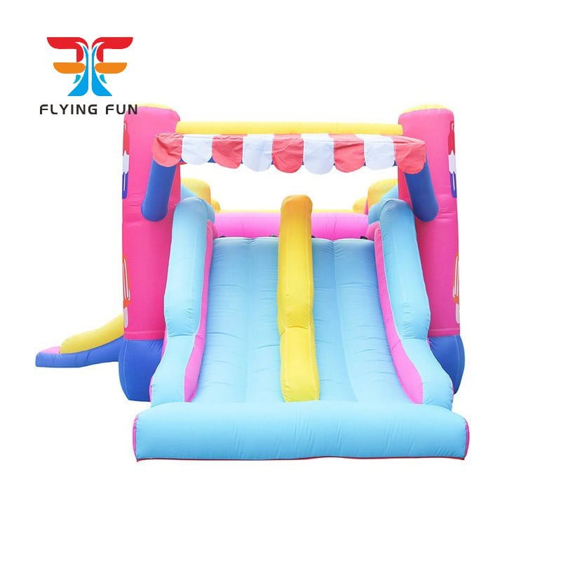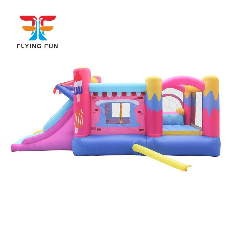 Children are more cheerful and feel at home to have fun with this ice cream bouncer slide combo. Featuring a bouncer and slide area, the safety fence allows children to be safe from a variety of fun activities. Crafted from durable nylon and vinyl,it is built for durable indoor or outdoor use.