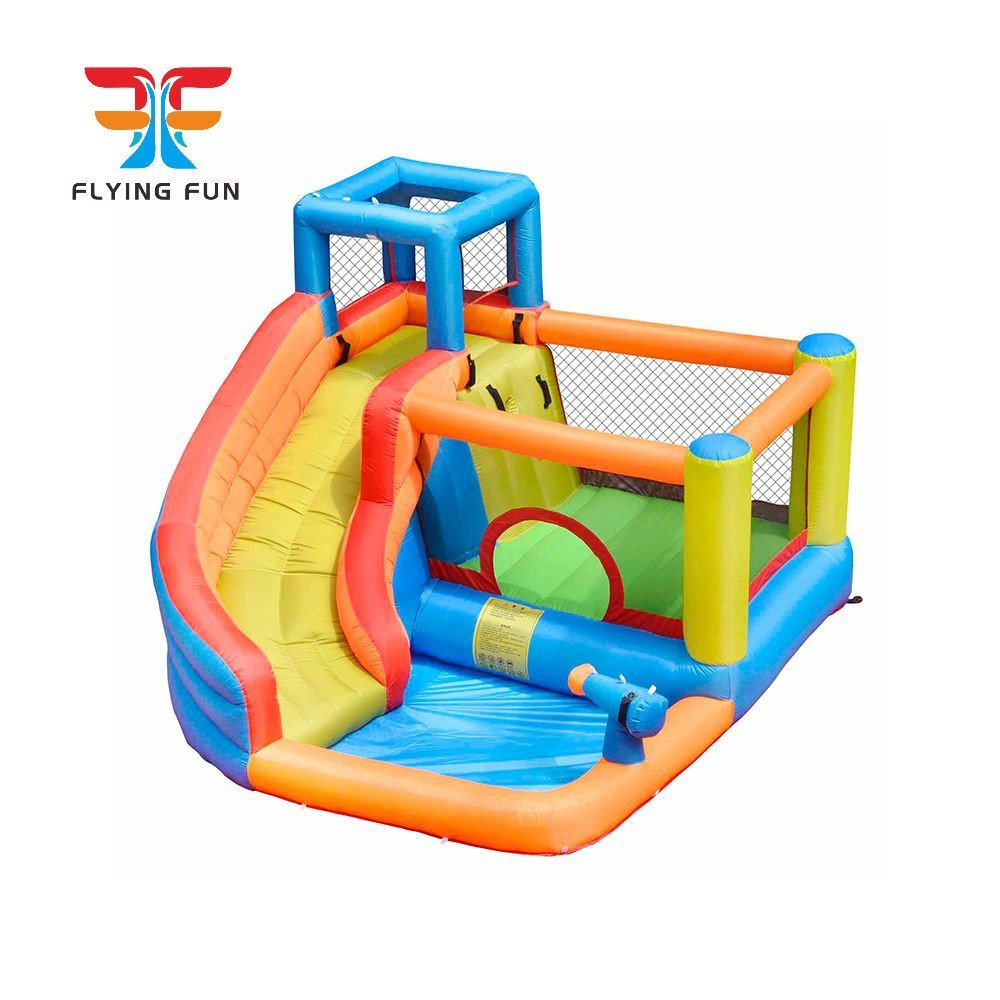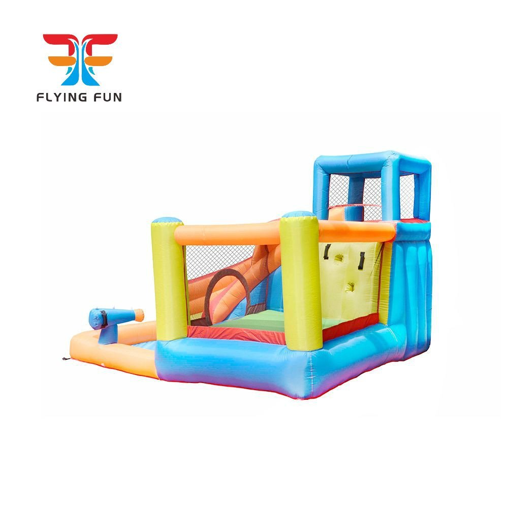 Main Features:  Bouncing Floor, Water Sliding With Water Spray, Rock Climbing, Splashing Gun.
