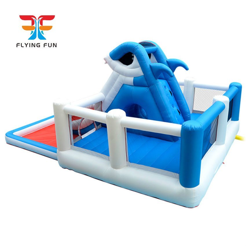 Main Features: Bouncing Floor, Water Sliding With Water Spray, Water Pool, Rock Climbing, Shark Shape Splashing, Tunnel Design.