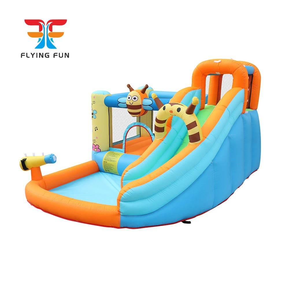 Main Features: Bouncing Floor, Water Sliding With Water Spray, Rock Climbing, Splashing Gun, Little Bee Design.