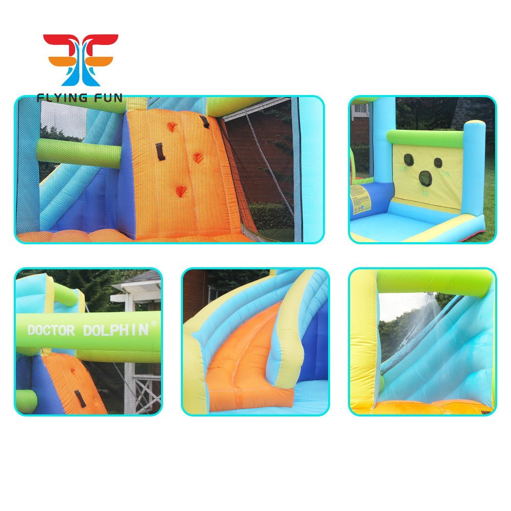 Main Features: Water Pool, Water Sliding With Water Spray, Rock Climbing, Bouncing Floor, Ball Hole.